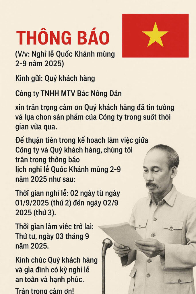 Để thuận tiện trong kế hoạch làm việc giữa Công ty và Quý khách hàng, chúng tôi trân trọng thông báo lịch nghỉ lễ Quốc Khánh mùng 2-9 năm 2025 như sau: